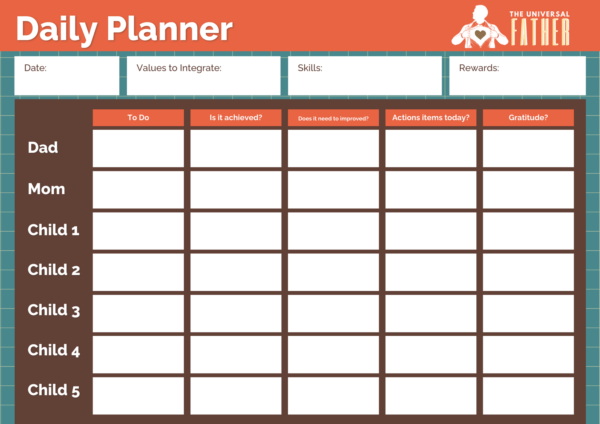 This isn't your average calendar. It's a collaborative space for parents to set shared goals, articulate their vision for the family, and plan daily tasks. By printing this out and sticking it up, parents can stay organized and connected, turning their collective aspirations into a tangible reality.PRICE